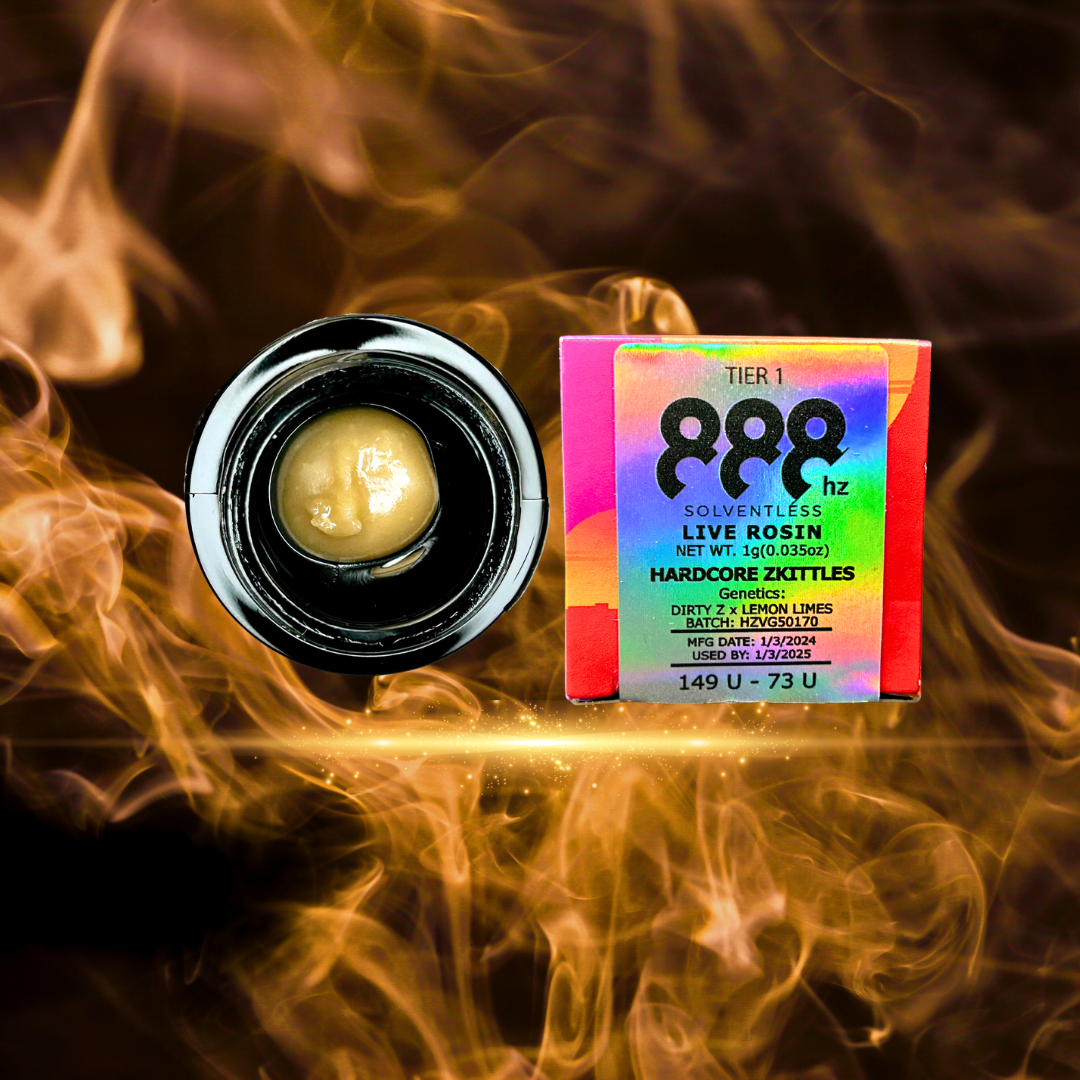 Through cold curing, we delicately preserve terpenes in freshly pressed rosin by placing it in a jar at low temperatures for 4-7 days, harmonizing the process with a gentle whip to create a wet badder-like texture, and concluding by weighing and packaging for your satisfaction.